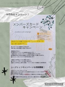 しかし、9月のキャンペーン中なら商品にもご利用可能/店内商品の中からお好きな商品¥5,500以上を選んでご購入いただくと満了のメンバーズカードにて¥1,000引きさせて頂きます。