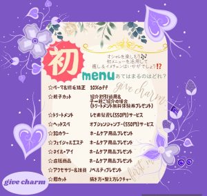 ギブチャームでまだ試したことのないメニューはないか、下記をよぉ~くご覧下さい✨