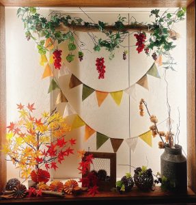 気候も秋になり、当店のディスプレイもすっかり秋仕様に。