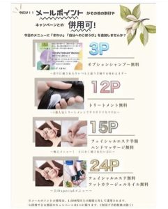 通常メールポイントは、カラーチケットやメンバーズカードなどの割引や他のキャンペーンと併用できませんが、この期間は併用してご使用頂けるお得な期間となっております✨