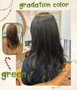 根元はマットベージュ!毛先はビビット色のグリーンに!