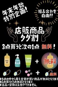 お好きな店販商品を3点買うと次の1点が無料になる何とも嬉しいキャンペーン!!