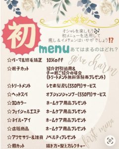 初めてのメニューに特典がつくキャンペーンを開催します😊