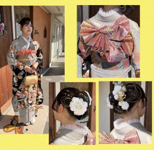 息子の友達のお姉様Kちゃんの振袖着付けとヘアセットのお支度をさせて頂きました👘