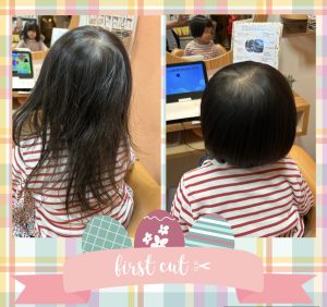 以前当店で七五三詣りの着付けとヘアセットのお支度をさせて頂いたHちゃんのファーストカットをさせて頂きました!