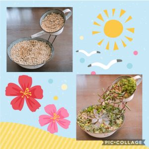 そんな中でも力強くすくすく育っていた多肉植物たちをかき集め、久しぶりに寄せ植えをしました”(ノ*>∀<)ノ